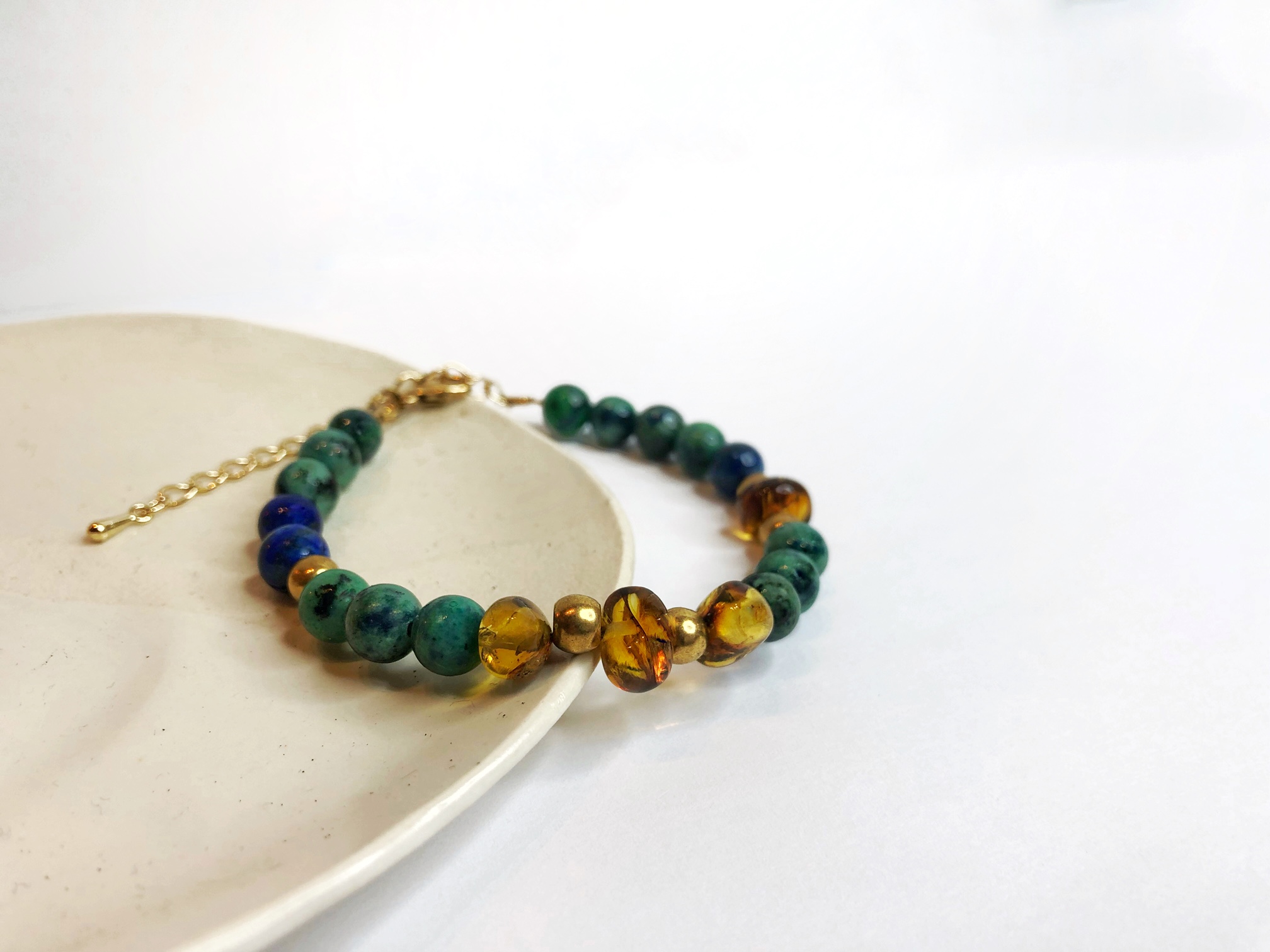 Bracelet Guayacan en azurite et ambre
