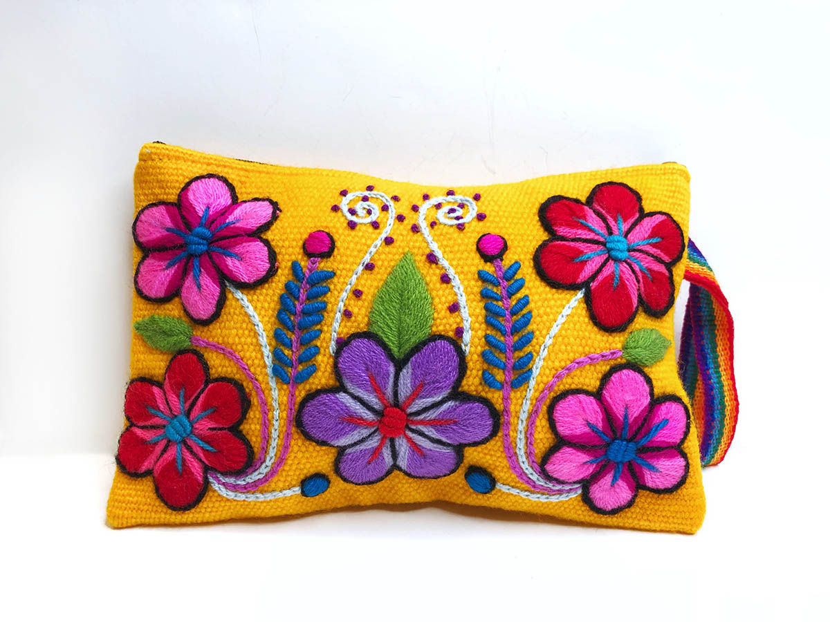 Pochette brodée à la main au Pérou jaune